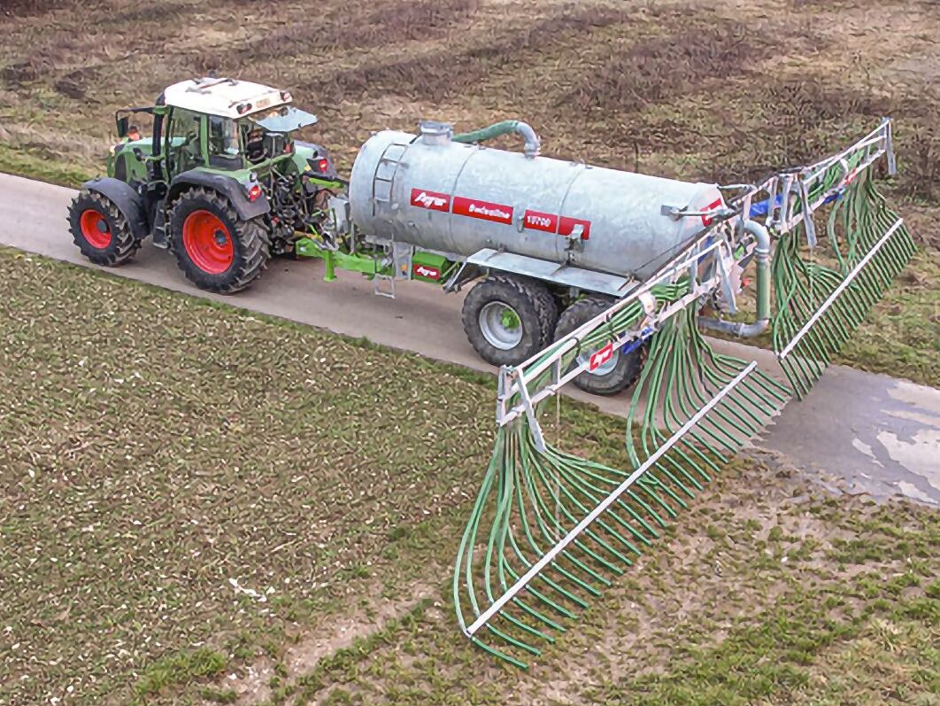 Wir verkaufen ein AGRAR Pumpfass PF 7000 RK mit aufgebautem AGRAR Schleppschlauchverteiler SVK 750/30