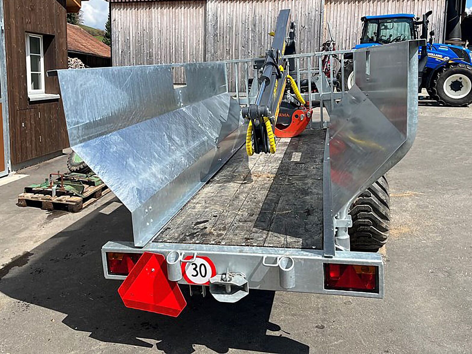 Option: Reisigwanne (Seitenbleche), zusätzlich hydr. Bremse, Eigenoelversorgung